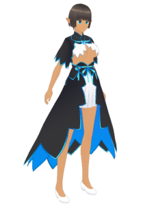 画像は途中経過をアオイちゃんの仮モデルに着せたもの、アオイちゃんの普段着セットです。